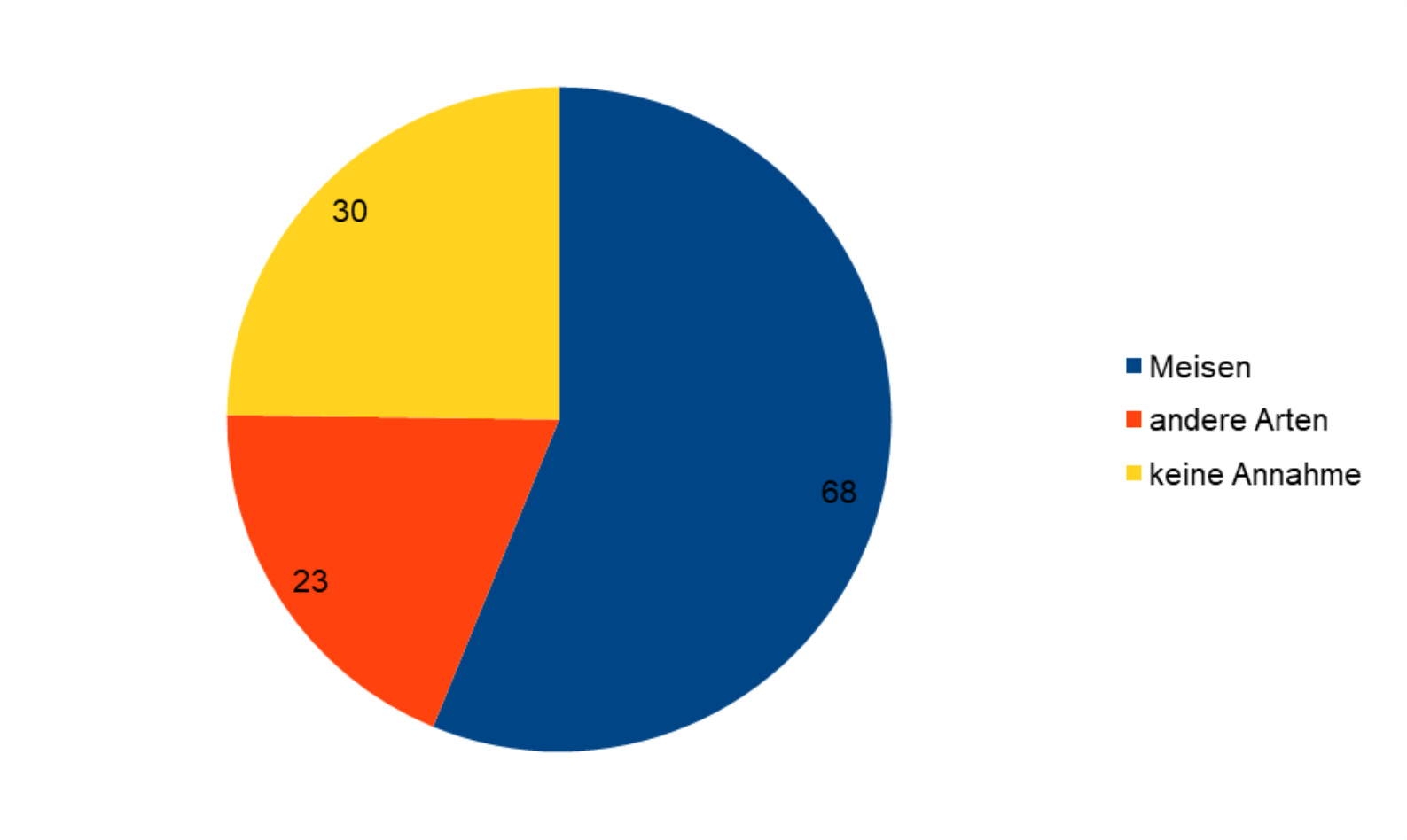 Es wurden zudem insgesamt acht Höhlenkästen durch Meisen belegt, Doppelbelegung gab es an diesem Standort keine.