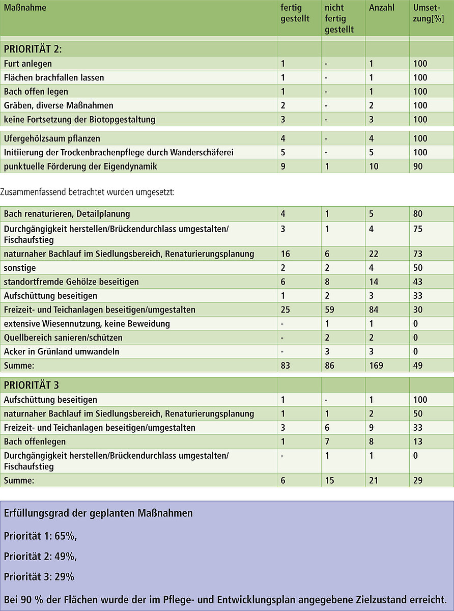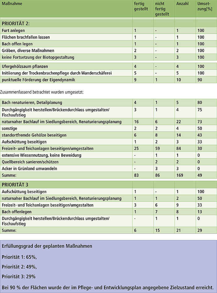 differenziert nach Maßnahmentypen und Priorität